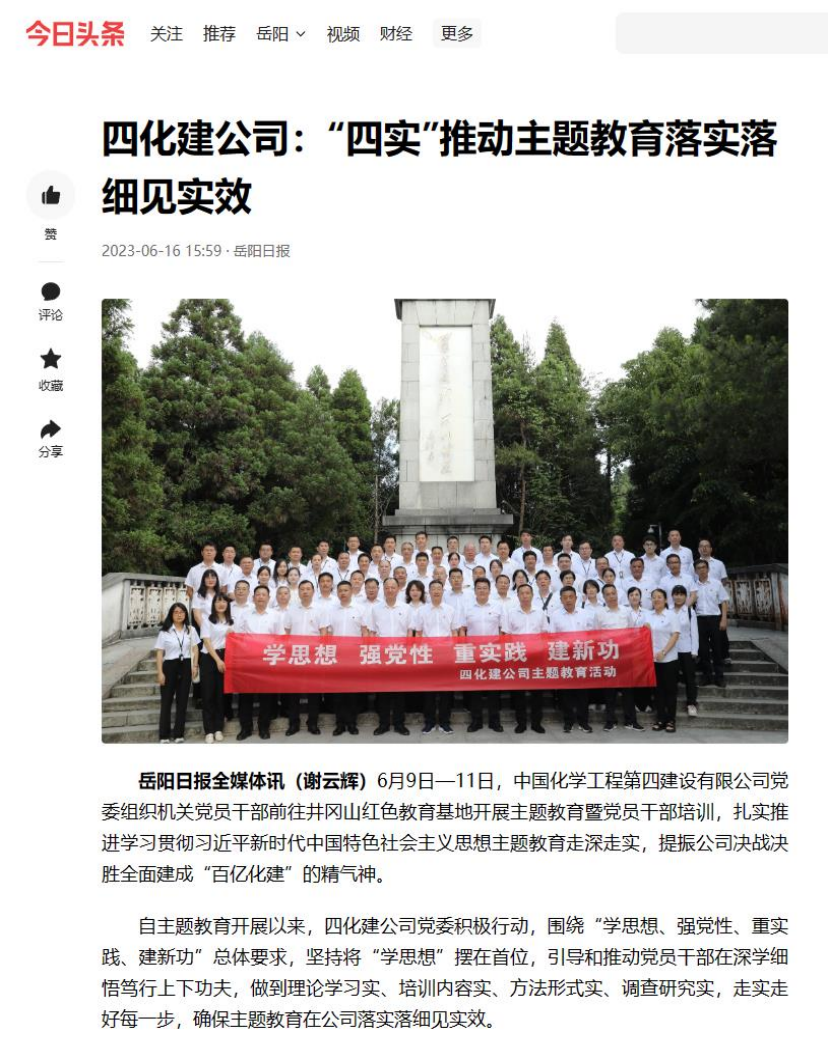 6月19日,《中國化工報》頭版以《四化建公司:“四實”確保主題教育見實效》,對公司扎實開展學習貫徹習近平新時代中國特色社會主義思想主題教育工作進行了全面系統(tǒng)報道,在全國石化行業(yè)引起廣泛影響。在6月16日,今日頭條也對公司主題教育工作進行了系統(tǒng)報道?,F(xiàn)全文轉(zhuǎn)發(fā)如下: