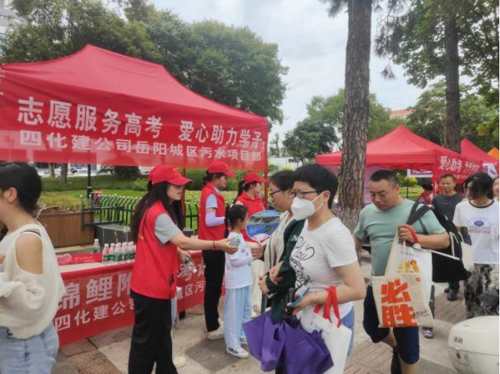 為更好地服務廣大高考考生及家長,項目部志愿者們專門在岳陽市第十四中學高考考點附近搭建遮陽棚,設置愛心服務點,為考生提供礦泉水、防蚊避暑用品和基礎醫(yī)藥器材等助考物品,并自發(fā)組建黨員先鋒車隊、工人先鋒車隊、青年先鋒車隊、現(xiàn)場服務隊協(xié)助進行愛心送考、文明交通勸導等志愿服務。