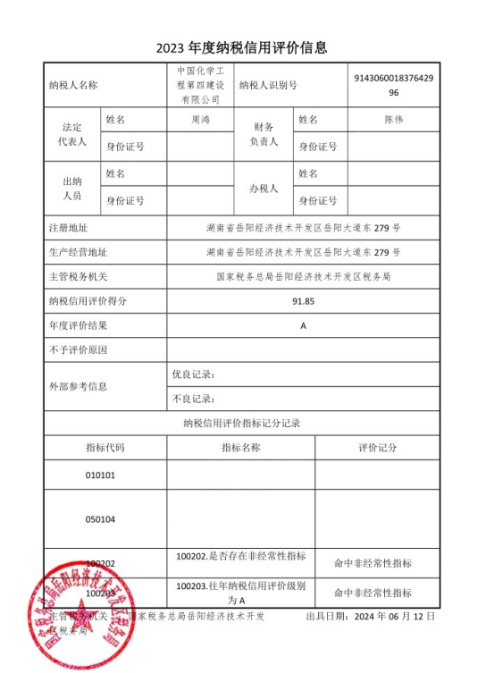 近日,國家稅務(wù)總局公布了2023年度企業(yè)納稅信用評(píng)價(jià)結(jié)果,公司再次獲評(píng)“納稅信用A級(jí)企業(yè)”。這是公司自2018年獲評(píng)“納稅信用A級(jí)企業(yè)”以來連續(xù)6年獲此殊榮。