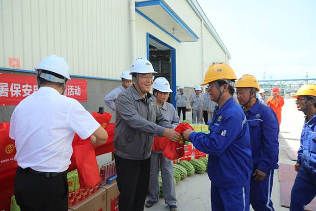 近日,公司黨委副書(shū)記、總經(jīng)理趙亮到中化勞務(wù)公司岳化新材料項(xiàng)目開(kāi)展“夏季送清涼 防暑保安康”慰問(wèn)活動(dòng),叮囑一線職工增強(qiáng)防暑降溫意識(shí),提升自我保護(hù)能力。