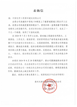 近日,西部公司收到貴州天然氣管網(wǎng)有限責(zé)任公司發(fā)來(lái)的表?yè)P(yáng)信,對(duì)項(xiàng)目部按照合同各節(jié)點(diǎn)目標(biāo)圓滿(mǎn)完成任務(wù)給予高度贊揚(yáng)。