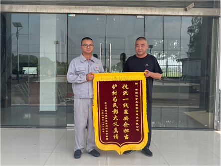 8月29日,平江縣委副書(shū)記、統(tǒng)戰(zhàn)部長(zhǎng)魯勇率隊(duì)來(lái)到公司,代表平江縣委縣政府對(duì)公司馳援平江縣抗洪搶險(xiǎn)和救災(zāi)復(fù)產(chǎn)工作表示衷心感謝,并贈(zèng)送“晝夜搶修保供水 緊急馳援顯擔(dān)當(dāng)”錦旗。公司副總經(jīng)理周栗、周耀華出席。