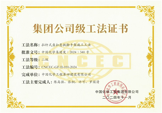 建筑工程公司“拉桿式盤扣懸挑腳手架施工工法”被認(rèn)定為集團級工法