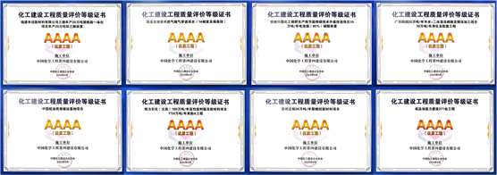 這9個獲獎項目分別是東北公司承建的恒力石化(大連)160萬噸/年高性能樹脂及新材料項目42/26萬噸/年苯酚丙酮工程榮獲5A級優(yōu)質(zhì)精品工程獎;西部公司承建的福建申遠(yuǎn)新材料有限公司三期年產(chǎn)20萬噸聚酰胺一體化項目年產(chǎn)20萬噸環(huán)己酮裝置、福泉至甕安天然氣輸氣管道項目(1#閥室及福泉段)、安徽六國化工磷肥生產(chǎn)線節(jié)能降碳技術(shù)升級改造項目10萬噸/年電池級(85%)磷酸裝置、中國航油西南儲運基地項目、廣西鵬越20萬噸/年半水-二水濕法磷酸及精深加工項目10萬噸/年凈化磷酸及配套工程,華東公司承建的恒力石化(大連)160萬噸/年高性能樹脂及新材料項目1#24萬噸/年雙酚A工程,華南公司承建的惠州立拓30萬噸/年聚烯烴新材料項目,中南公司承建的成品油能力建設(shè)371處工程等8個項目獲評4A級優(yōu)質(zhì)工程獎。
